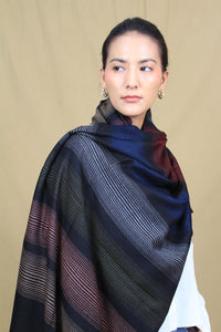 Mimosa Black Multi Colour Strips Cashmere stole - Stole / 120g*206cm*73cm