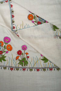 Rose of Sharon Ivory Floral Paldar Embroidered Pashmina Shawl - Shawl / 237g*206cm*105cm