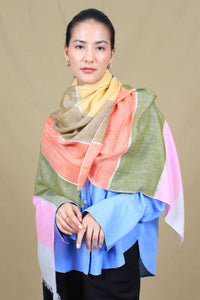 Zaffron Check Strips And Zari Cashmere Stole - Stole / 98g*205cm*72cm / Multi Coloured
