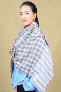 Umair Pearl River Grey Check And Strips Cashmere Stole - Stole / 107g*206cm*74cm