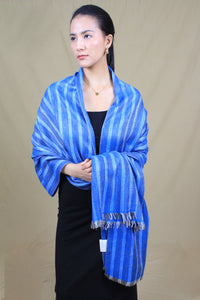Hisham Royal Blue Strips Cashmere Stole - 117g*207cm*73cm