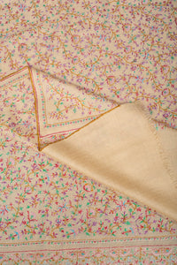 Mellifluus Pastel Cream Jaali Sozni Embroidered Pashmina Shawl - Shawl / 290g*208cm*106cm