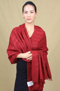 Fahd Cherry Red Ikat Dyed Cashmere Stole - Stole / 111g*205cm*72cm