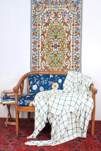 Hamilton Arcadia White Blue Check Double Pashmina Blanket - Blanket / 1500g*280cm*140cm