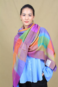 Melanie Windowpane Ikat Dyed Cashmere Stole - Stole / 96g*206cm*75cm