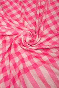 Melody Fuscia Pink Gingham Check Cashmere Shawl - Shawl / 162g*208cm*106cm