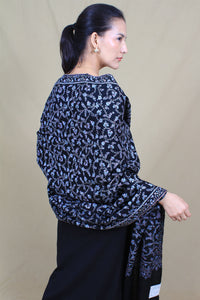 Hidayah Black Sozni Jaali Pashmina Embroidered Pashmina shawl - Shawl / 280g*205cm*103cm