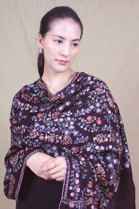 Shehjaar Mahogany Neem Jama Sozni Embroidered Pashmina Shawl - Shawl / 286g*204cm*107cm