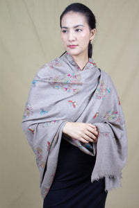Barakah Taupe Buti & Butterflies Sonzi Embroidered Pashmina Shawl - Shawl / 285g*205cm*103cm