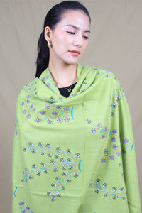 Wardah Neon Green Butidar Sozni Embroidered Pashmina Shawl - Shawl / 271g*205cm*104cm