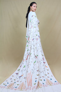 Aafiyah Ivory Forest Theme Sozni Embroidered Pashmina Shawl - Shawl / 226g*200cm*105cm