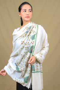 Haleemah Ivory Paldar Sozni Embroidered Pashmina Shawl - Shawl / 239g*205cm*105cm