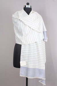 Princeton Arcadia White Stripes Cashmere Stole - Stole / 108g*200cm*71cm
