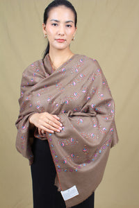 Tehzeeb Classic Taupe Sonzi Neem Jama Embroidered Pashmina Shawl - Shawl / 282g*201cm*104cm