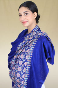 Sweet Voilet Azure Blue Paldar Sozni Embroidered Pashmina Shawl - Shawl / 237g*205cm*103cm