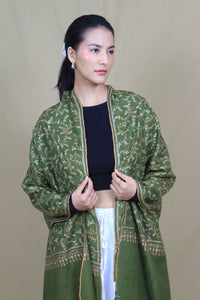Ehtishaam Sheen Green Sozni Jaali Embroidered Pashmina Stole - Stole / 150g*206cm*72cm
