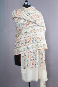 Vortex Vine Ivory Jaali Khatras Embroidered Pashmina Shawl Sale