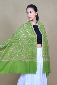 Urooj Slimy Green Sozni Jaali Embroidered Pashmina stole - Stole / 150g*207cm*72cm