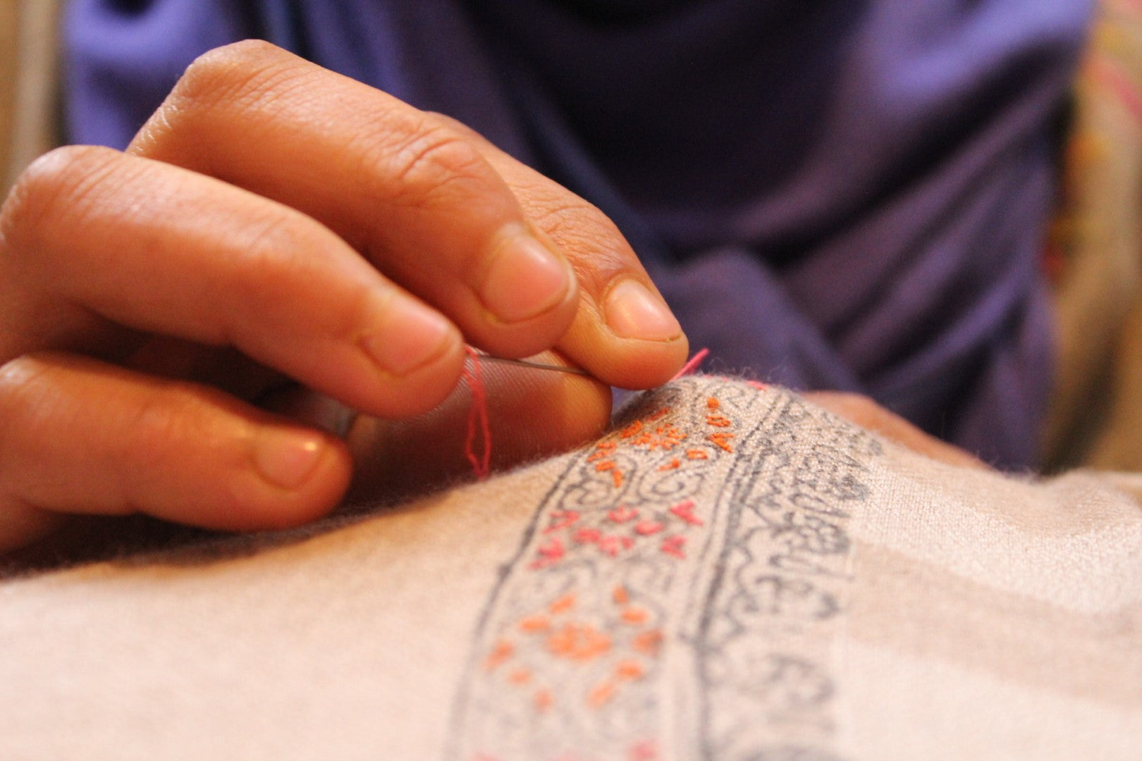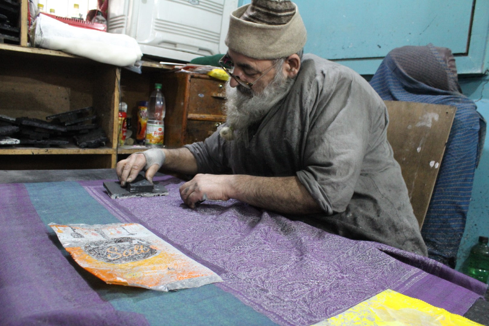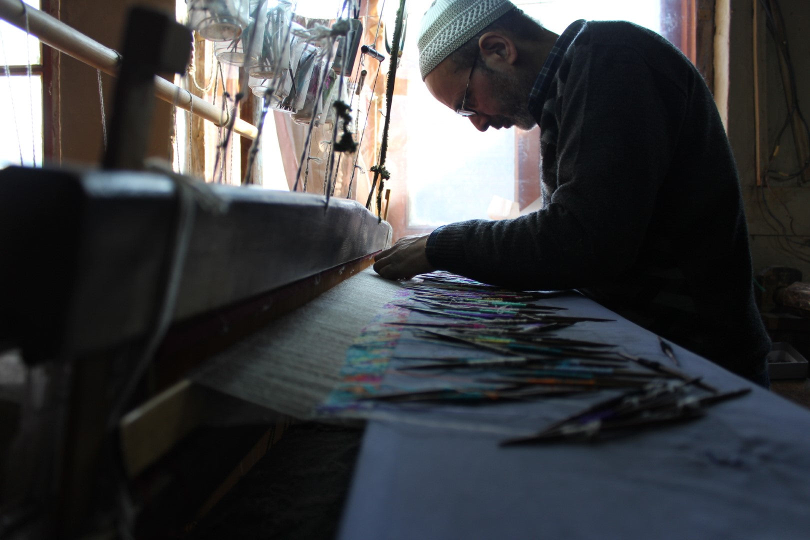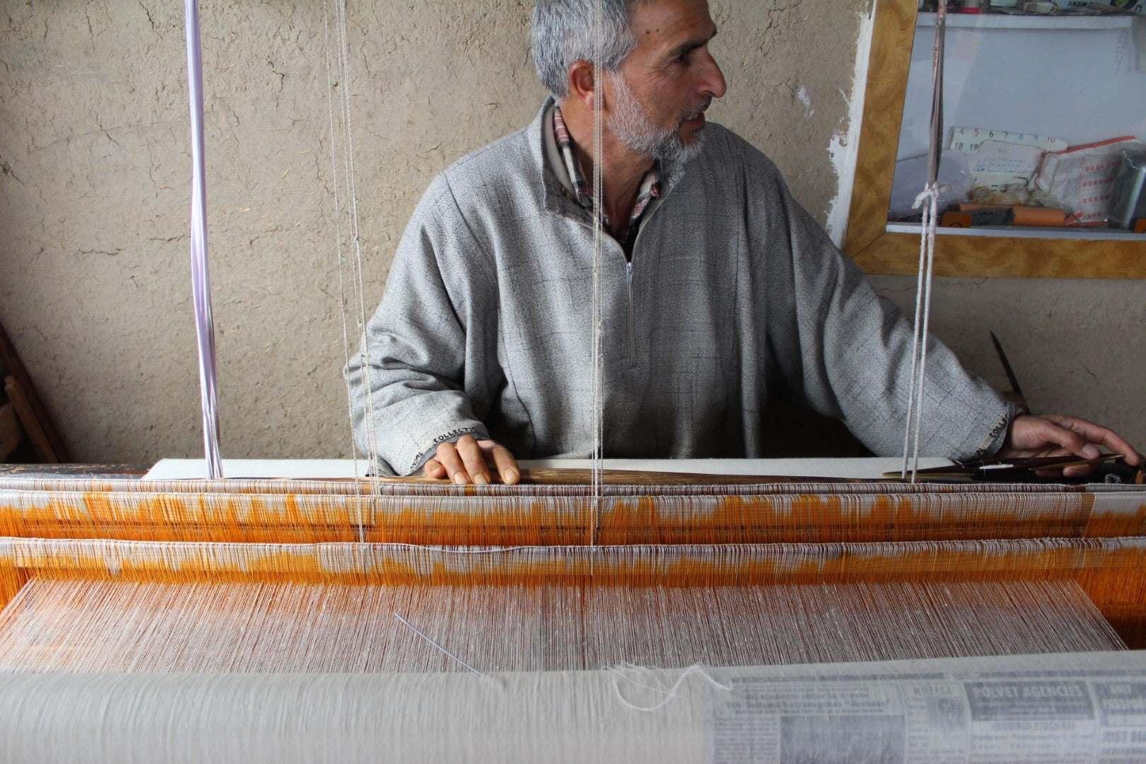 Men weave the yarn into shawls. Weavers rightly consider themselves artists, as it is they who transforms raw material into a soft fine warm textile.The skills of these artisans have been honed for over five centuries, influenced each time by a new ruler, tradesman or invader – the Persians, the Moguls, Afgani traders and French importers.